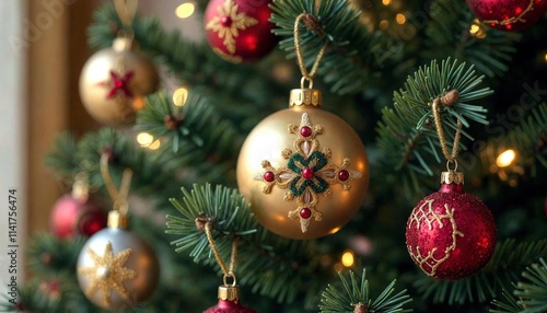 Fototapeta premium Vintage Christmas Tree Decorations Close-Up