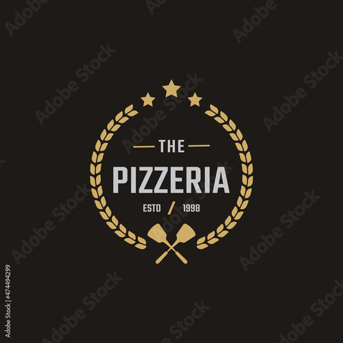 © Imnot99, Fototapeta premium Vintage Classic Emblem Badge Spatula Pizza Pizzeria Logo Design Inspiration