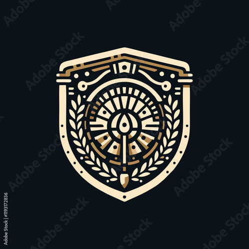 Obraz premium Vintage Classic Floral Shield Roman and Greek Line Drawing Style Logo Design, T-shirt and Streetwear