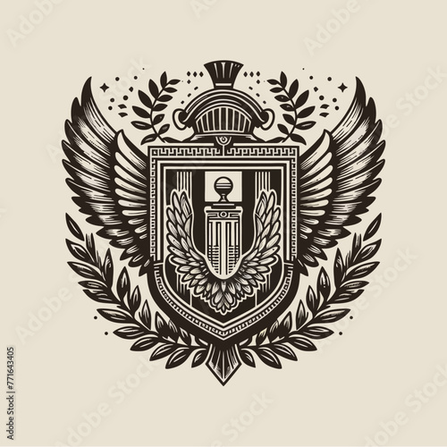 © Nouzen, Fototapeta premium Vintage Classic Floral Shield Roman and Greek Line Drawing Style Logo Design, T-shirt and Streetwear