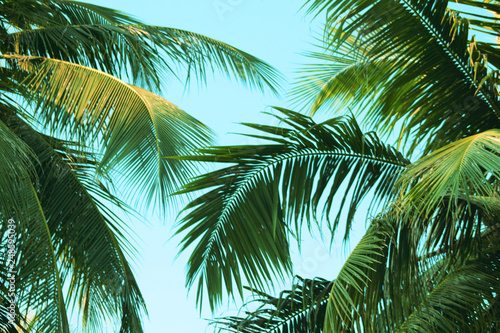 Fototapeta premium Vintage coconut leaves and sky background,summer theme.