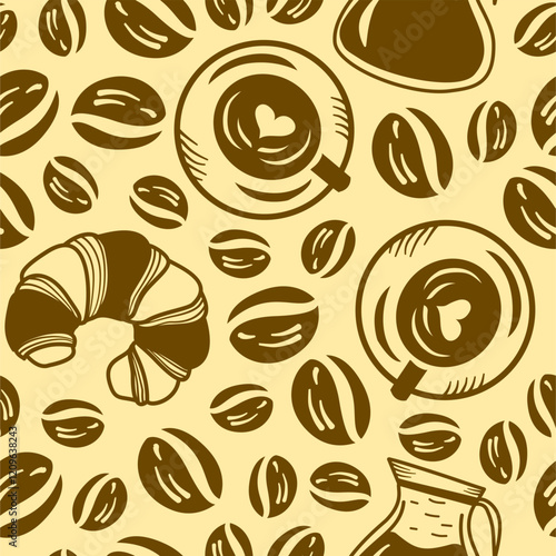 © riansa28, Obraz premium Vintage Coffee Doodle Pattern background. cafe pattern background. Cafe Themed Coffee Bean Pattern background. Coffee and Cafe pattern background.