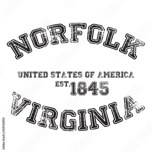 © Berker, Fototapeta premium vintage college varsity virginia's norfolk city slogan emblem print with grunge effect for graphic tee t shirt or sweatshirt - vector