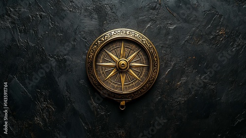 Fototapeta premium Vintage compass positioned centrally on dark textured surface.