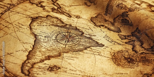 © Ali, Fototapeta premium Vintage compass rose on an old world map.