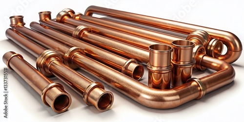 © Man888, Naklejka premium Vintage Copper Pipes: Isolated 3D Render on White Background - Industrial Plumbing Stock Photo