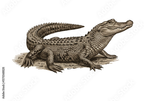 Naklejka premium Vintage Crocodile Illustration Reptile Animal Isolated Transparent Background