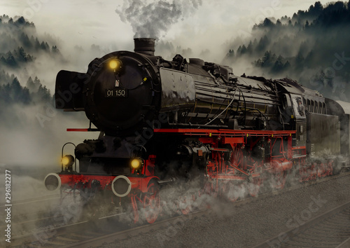 © Vince Scherer , Obraz premium vintage czarny parowy pociąg kolejowy