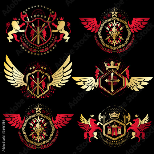 Fototapeta premium Vintage decorative heraldic vector emblems composed with element