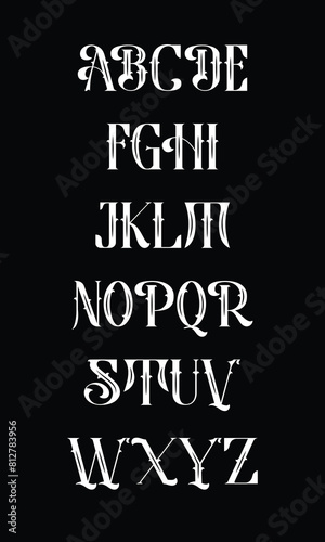 © over50, Obraz premium Vintage Decorative Old Font Alphabet, Lettering design in retro style.