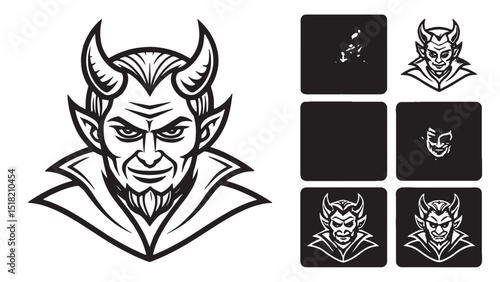 Fototapeta premium Vintage Devil Head Mascot Logo Design Black and White Illustration, Vector Graphics