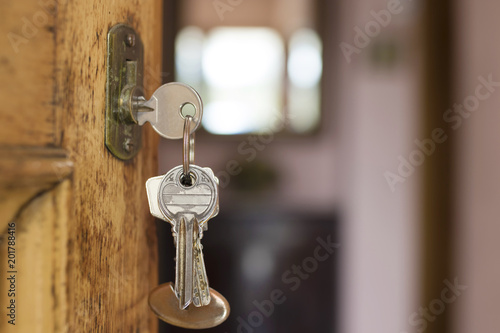 © carballo, Fototapeta premium vintage door with keys in the lock