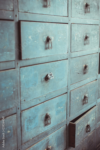 © Siriporn, Fototapeta premium vintage drawer in light ocrean blue color