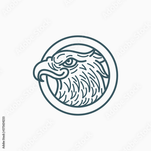 © kosongxlima, Fototapeta premium Vintage Eagle Head Line Badge Vector Illustration