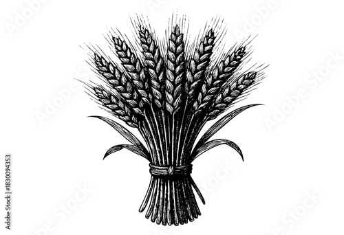 Obraz premium Vintage engraved illustration of a tied wheat sheaf in detailed etching style...