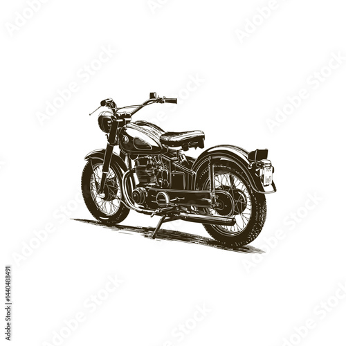 © AnupKumar, Obraz premium Vintage engraving woodcut retro motorcycle vector illustration art design
