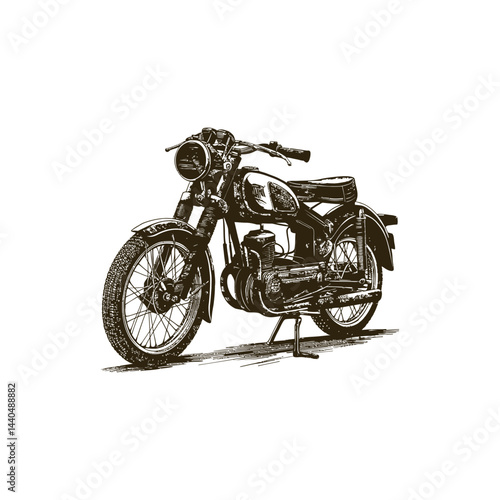 © AnupKumar, Obraz premium Vintage engraving woodcut retro motorcycle vector illustration art design