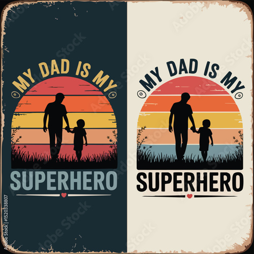 © Khadija, Obraz premium Vintage Father’s Day T-Shirt Design with Sunset and Silhouettes