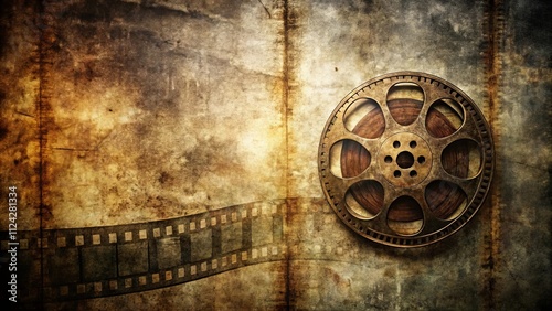 © Kukar Studio, Naklejka premium Vintage Film Reel on Aged Paper Background A nostalgic image suggesting a story waiting to be told