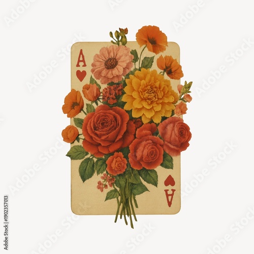 Obraz premium Vintage floral playing card illustration.