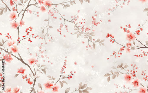© 宁 王, Fototapeta premium Vintage floral texture art background