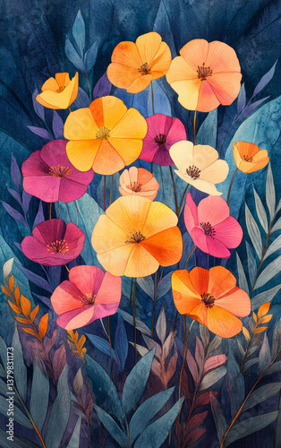 © 宁 王, Naklejka premium Vintage floral texture art background