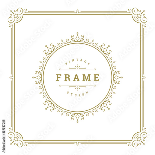 Fototapeta premium Vintage flourishes ornament swirls lines frame template vector illustration.