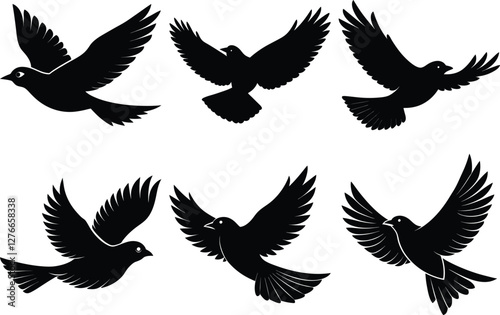Fototapeta premium vintage flying bird silhouette set, drawing birds black silhouette