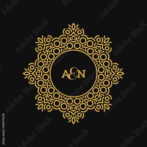 © kotoffei, Obraz premium Vintage Frame. Vector illustration. Geometric Line Design Style for Hipster Art. Art Deco Monogram and Emblem Elements. Copy Space for Text.
