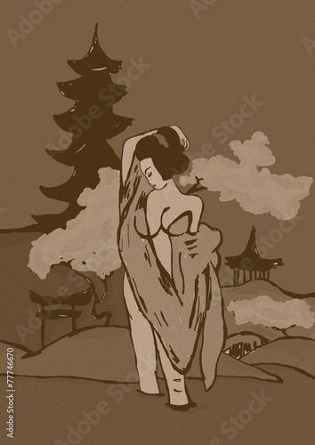 © logan81, Obraz premium Vintage geisha doing bath