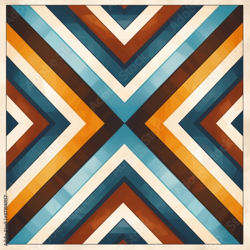 Obraz premium Vintage Geometric Pattern in Blue, Orange, and Brown