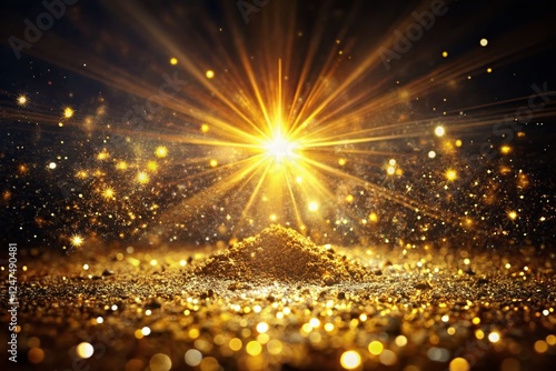 © Four888, Fototapeta premium Vintage Gold Luxury Success: Light Beams & Particles on Black