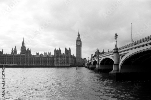 © Jorge Elizaquibel, Naklejka premium Vintage grainy analog view of westminster bridge and big ben in london