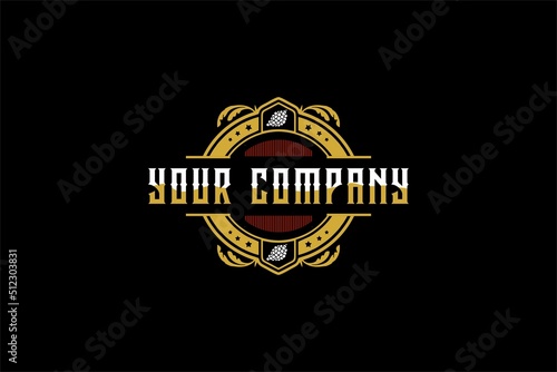 Fototapeta premium Vintage grapes harvest and wine label vector image