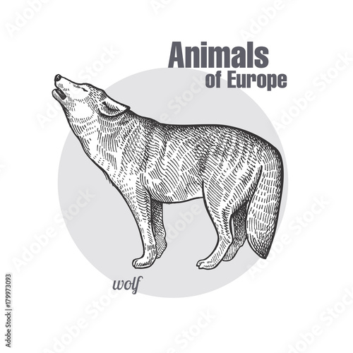 © marinavorona, Obraz premium Vintage grawerowanie zwierzęcego wilka.