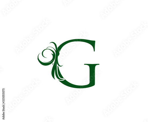 © bintank, Obraz premium Vintage Green G Letter Floral logo Design