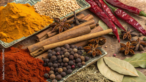 Fototapeta premium Vintage grunge colorful collage background with different spices theme....