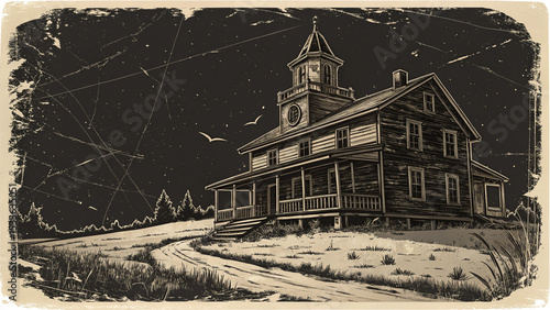 © huzaifaabid, Fototapeta premium Vintage Grunge Weathered Old House Illustration