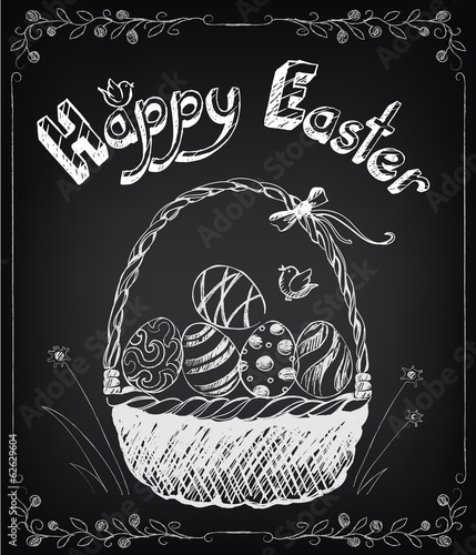 Fototapeta premium Vintage Happy Easter card with basket and eggs
