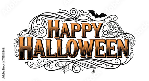 © Hamza, Obraz premium Vintage Happy Halloween text with bat isolated on transparent background