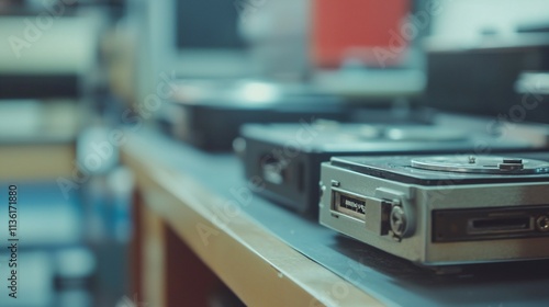 Fototapeta premium Vintage hard drive isolated on background, symbolizing memory storage and data preservation concept for technology and retro design projects.
