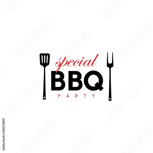 © AUQSTHARY ATH, Fototapeta premium Vintage hipster Grill Barbeque invitation party barbecue bbq with fork spatula Logo design