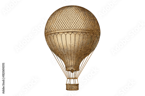 © Alan, Fototapeta premium Vintage hot air balloon with basket in sepia tone isolated on white background