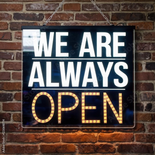 Fototapeta premium Vintage Illuminated 'We Are Always Open' Sign