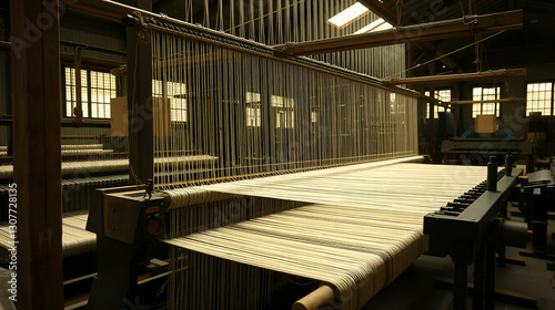 Fototapeta premium vintage image of a loom in a traditional textile factory, showcasing the history and evolution of the textile industry,