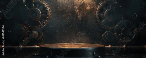 Naklejka premium Vintage industrial background with rusty gears and metallic textures, perfect...