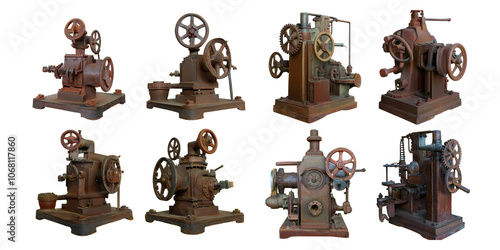 © Jieee Mooo, Fototapeta premium Vintage Industrial Machines Collection, PNG collection, set bundle, isolate on transparent or white background