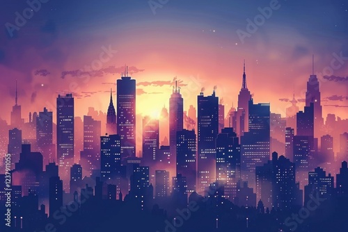© OHG, Obraz premium Vintage Ink Illustration of City Skyline at Dusk