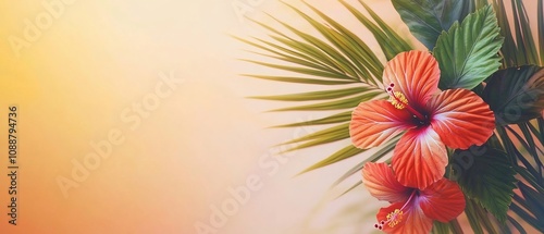 Naklejka premium Vintage Inspired Tropical Florals with Warm Summer Lighting