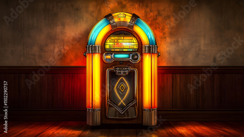 Fototapeta premium Vintage Jukebox in Retro Diner Setting Music Nostalgia 50s 60s